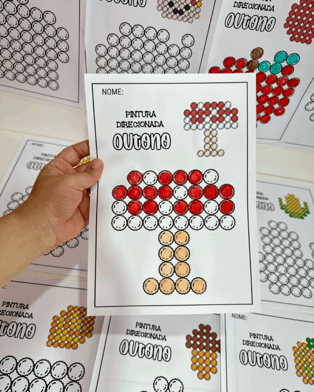 Essa atividade estimula a coordenação motora fina, o foco e a concentração das crianças, além de ser uma excelente ferramenta para introduzir ou reforçar as cores e os elementos visuais do outono (como cogumelos, girassóis e outras formas). Os desenhos prontos se transformam em lindos murais decorativos para a sala de aula ou em atividades de exposição.